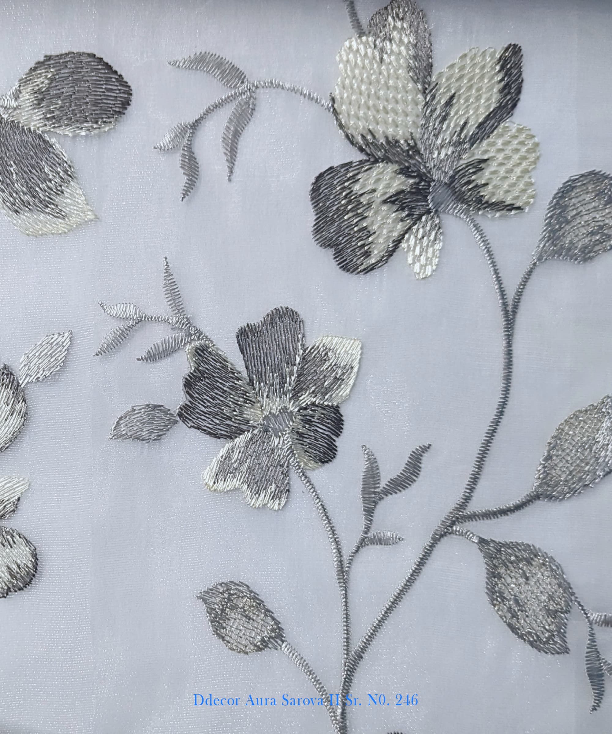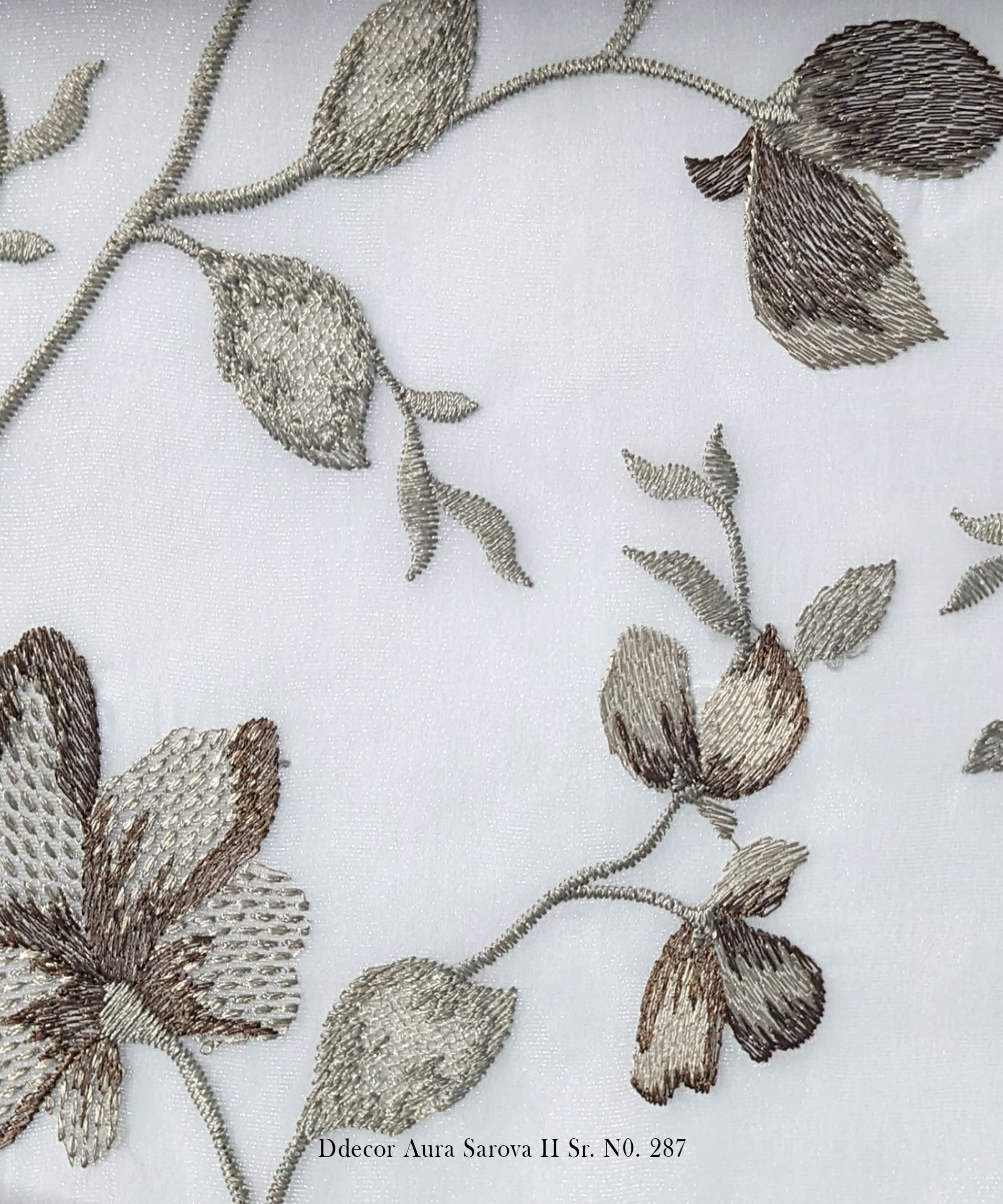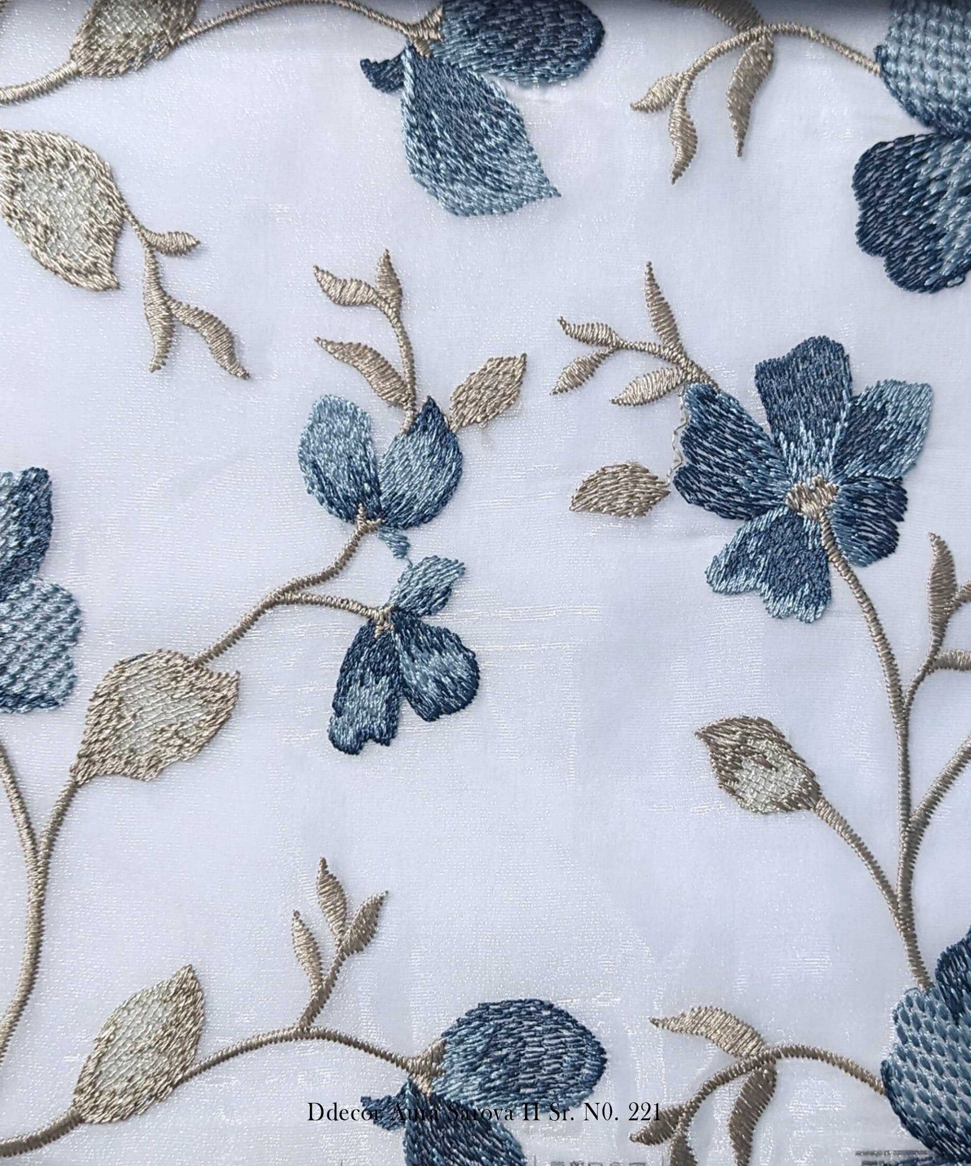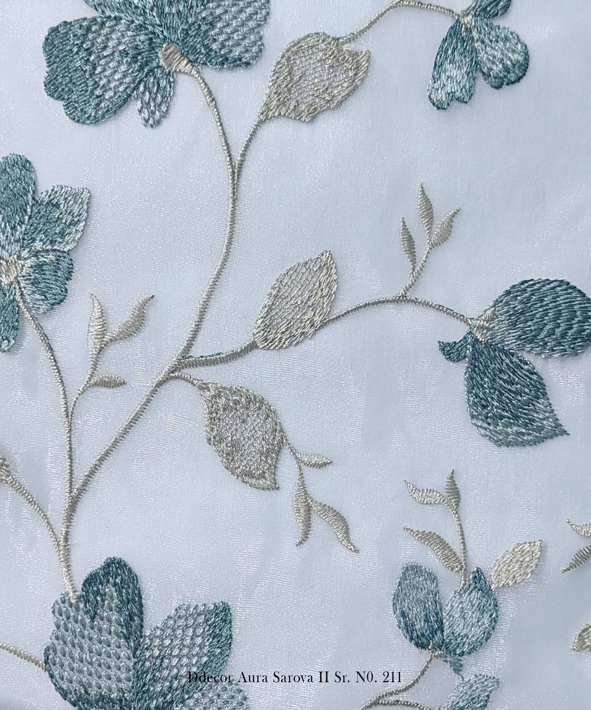 Bring the outdoors inside with the soft elegance of D’Decor Aura Sarova II Sr. No. 211. This floral embroidery curtain fabric features delicate flower and leaf motifs, intricately stitched onto a lustrous sheer base. Perfect for spaces that call for serenity and charm, this fabric elevates both curtains and cushions with a nature-inspired aesthetic.