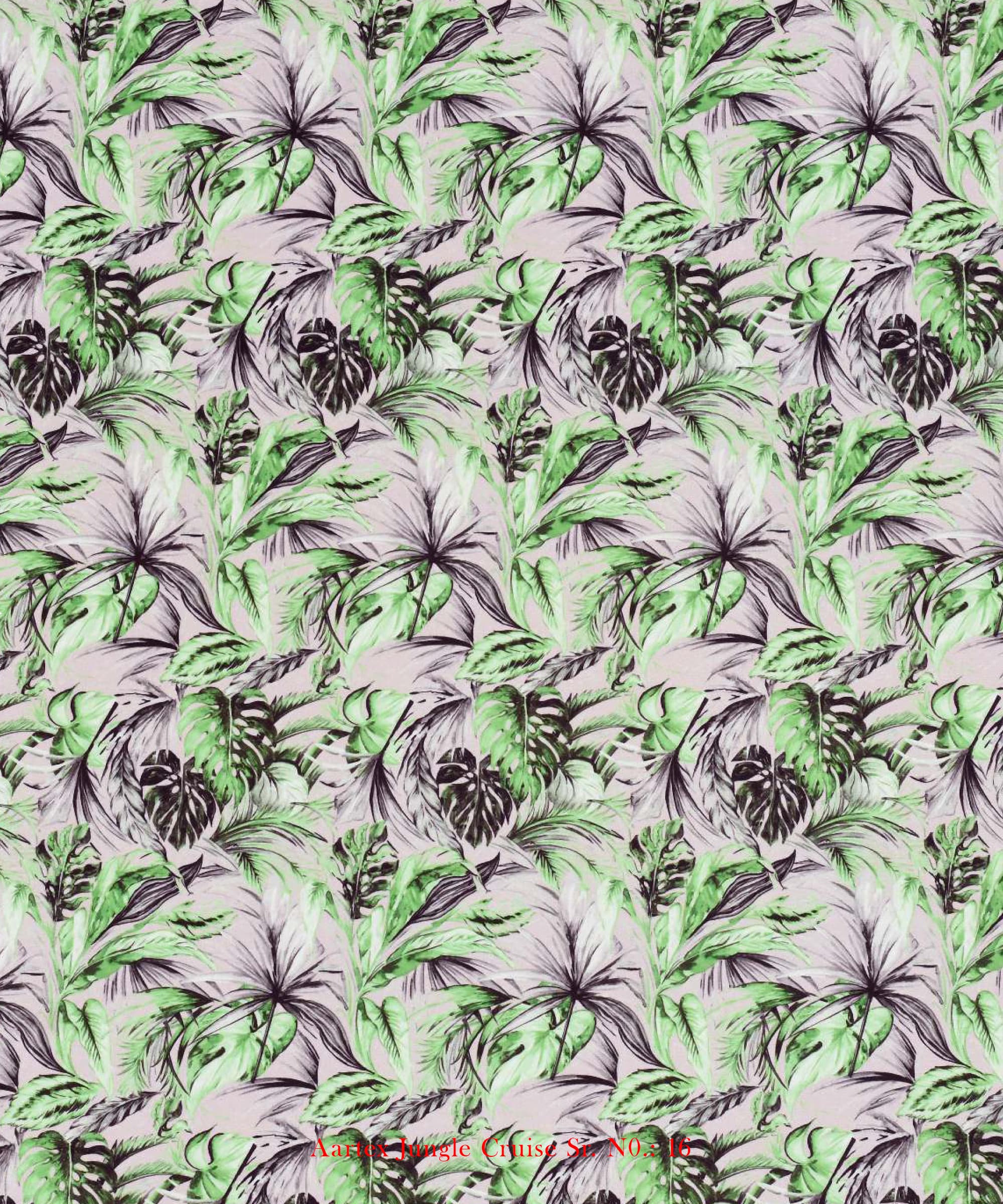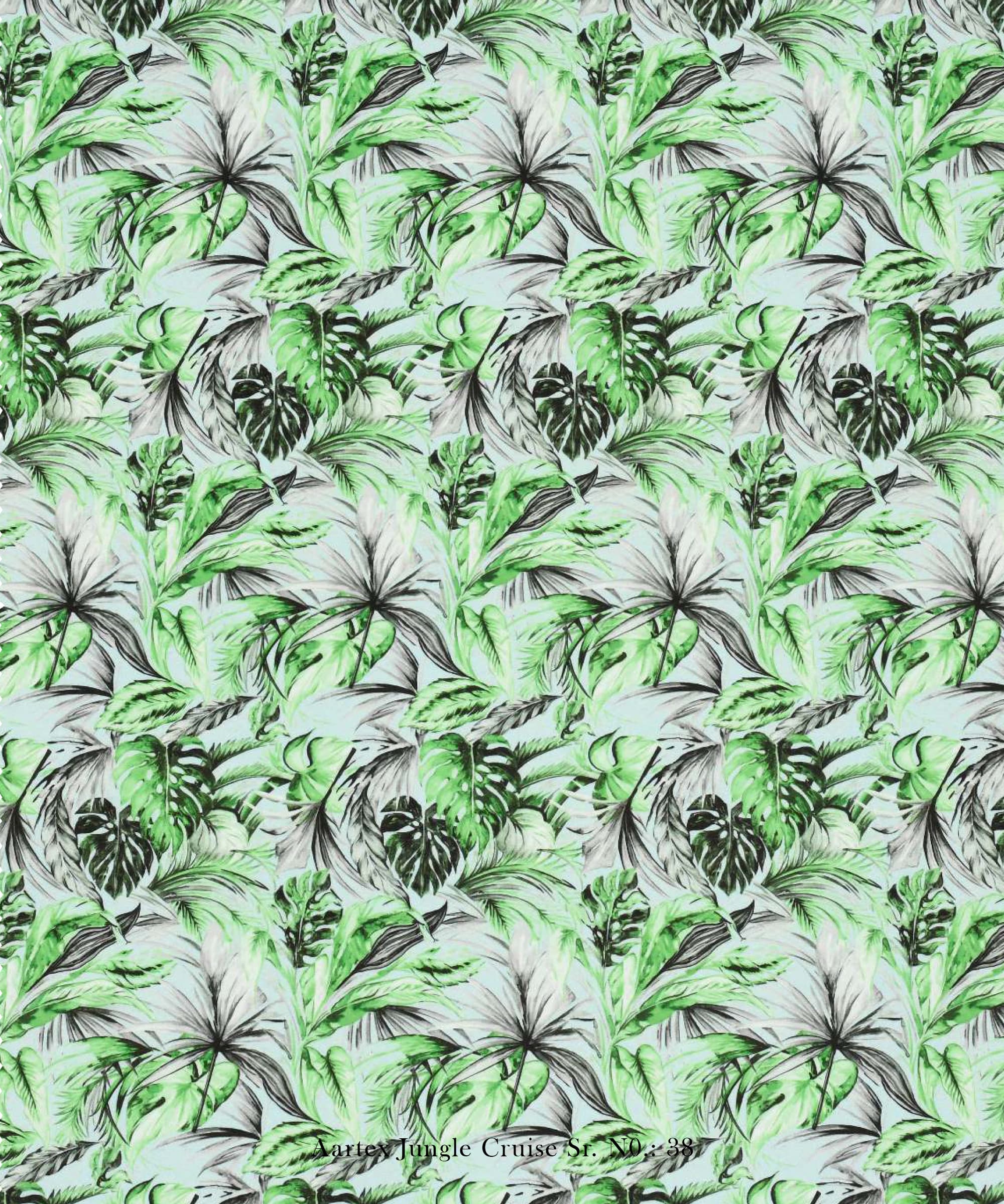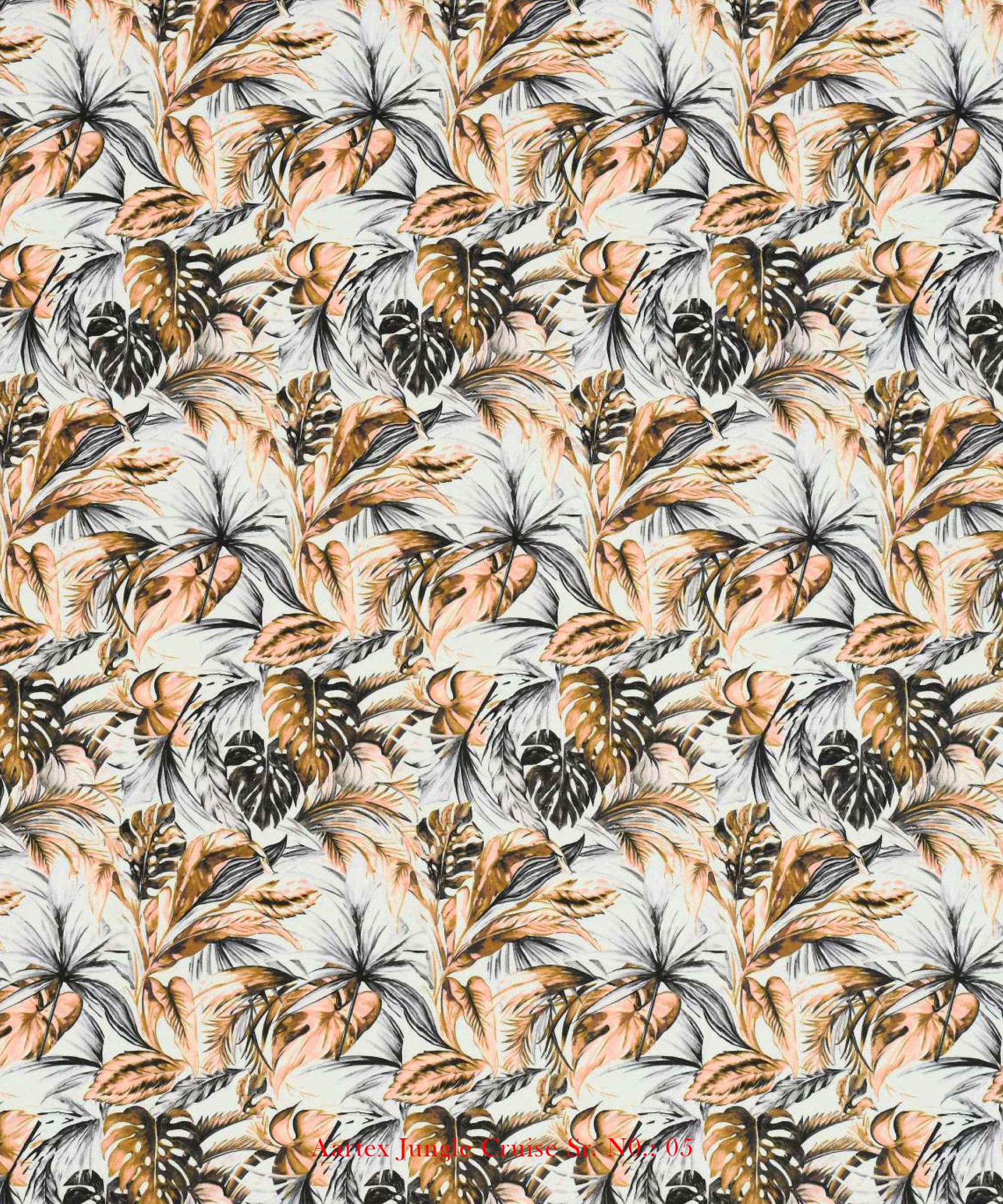 The Tarzan design from the Aartex Jungle Cruise Collection is a nature-inspired tropical print, perfect for creating a serene and luxurious ambiance. This fabric blends earthy tones and botanical elements, making it an ideal choice for elegant interiors.